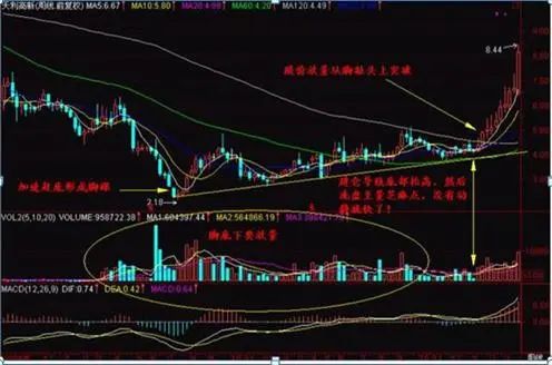 量是关键点,量缩放要有规律,除了脚底要有量,还有突破脚趾头时也要放量,还有一个关键点就是股价盘整到脚趾头那个位置时必须各种中短期均线几乎收敛在一起,那才是最有力的脚趾头,只要有量的配合就容易飙升!