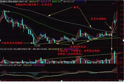 股的成交量变化在底部时一般有两种特征:一种是成交量在低位底部从某天起突然放大,然后保持一定的幅度,几乎每天都维持在这个水平,在日线图上股价小幅上涨,下跌时常常出现十字星状;另一种是成交量从某一天起逐步放大,并维持这种放大趋势,股价常常表现为小幅持续上涨,说明主力已没有耐心或时间来慢慢进货,不得不将股价一路推高边拉边吸。