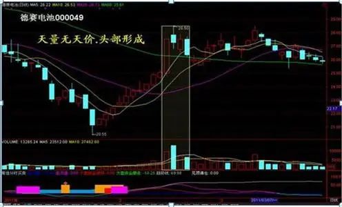 高价区一根长绿,若后两根大阳也不能吞没,表示天价成立,应及时清仓;高价区无论有无利好利空大阴大阳,只要出现巨量,就要警惕头部的形成。