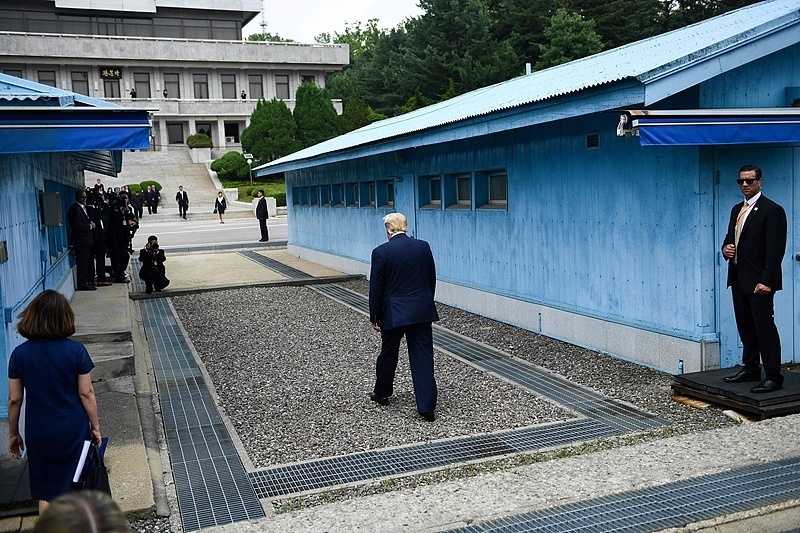 2019年6月,当时正在韩国访问的特朗普在板门店与朝鲜劳动党总书记、国务委员长金正恩握手会面。随后,特朗普跨越军事分界线来到朝方一侧,成为朝鲜战争停战以来踏上朝鲜国土的首位美国在任总统。此次会晤,成为特朗普引以为傲的政绩。竞选期间,特朗普就表示,他与金正恩“相处得很好”。有分析认为,特朗普上任后或将重启美国与朝鲜的对话。