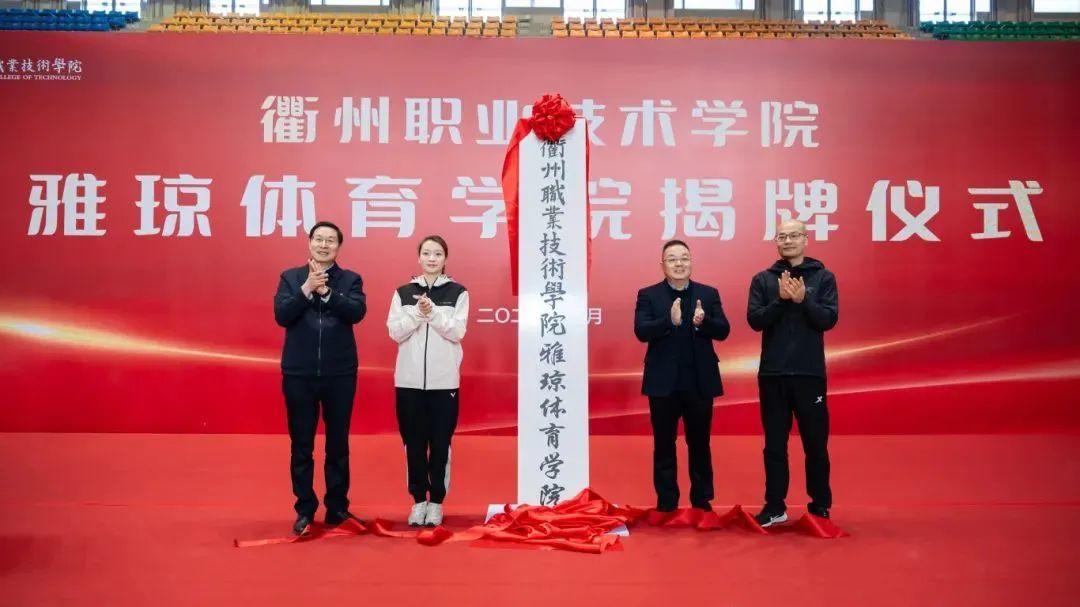 1月6日上午,衢州职业技术学院雅琼体育学院揭牌仪式在校体育馆举行。巴黎奥运会冠军、世界羽毛球混双“大满贯”运动员、衢州城市形象大使黄雅琼受聘为雅琼体育学院名誉院长并为学院揭牌。